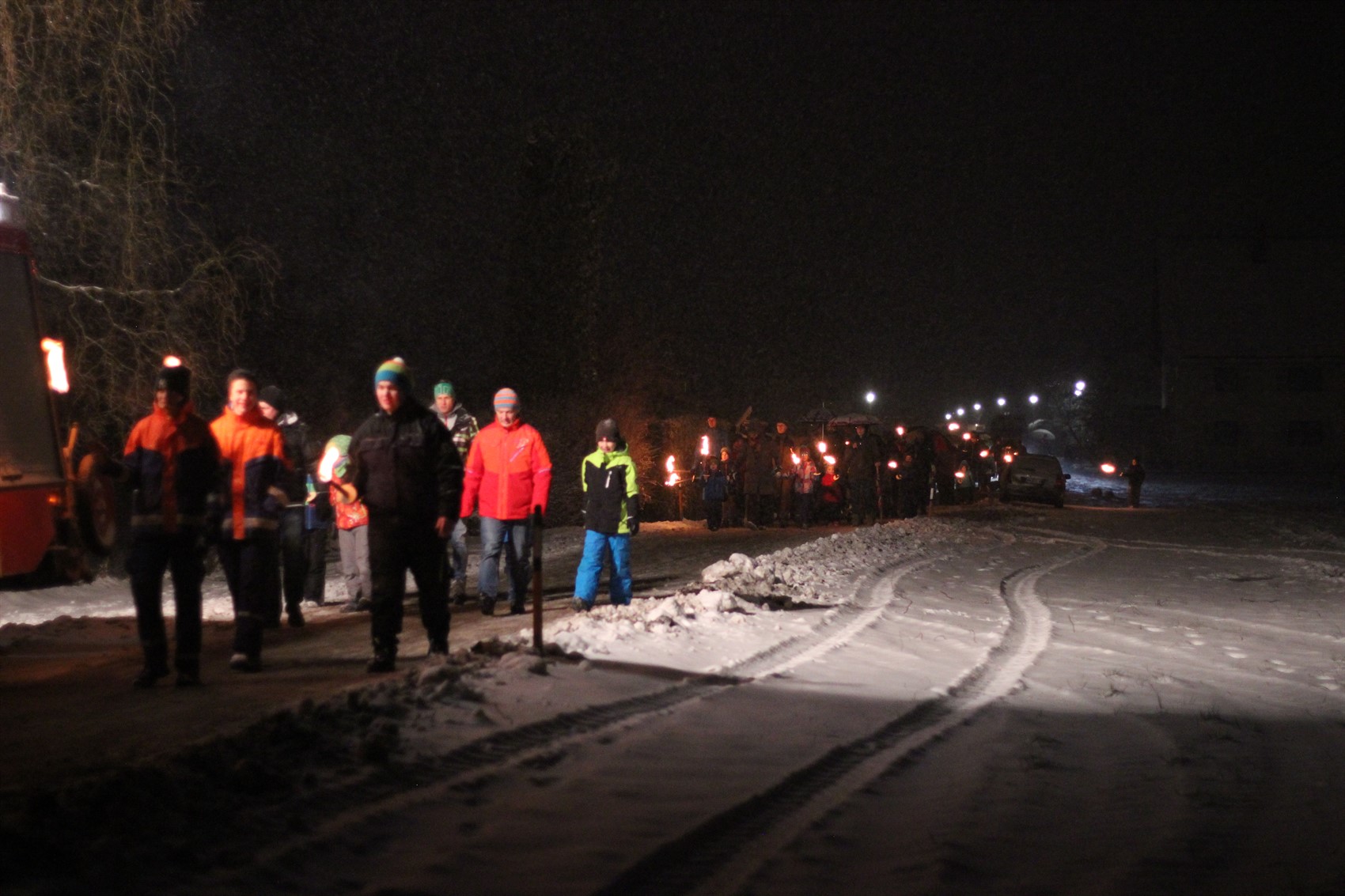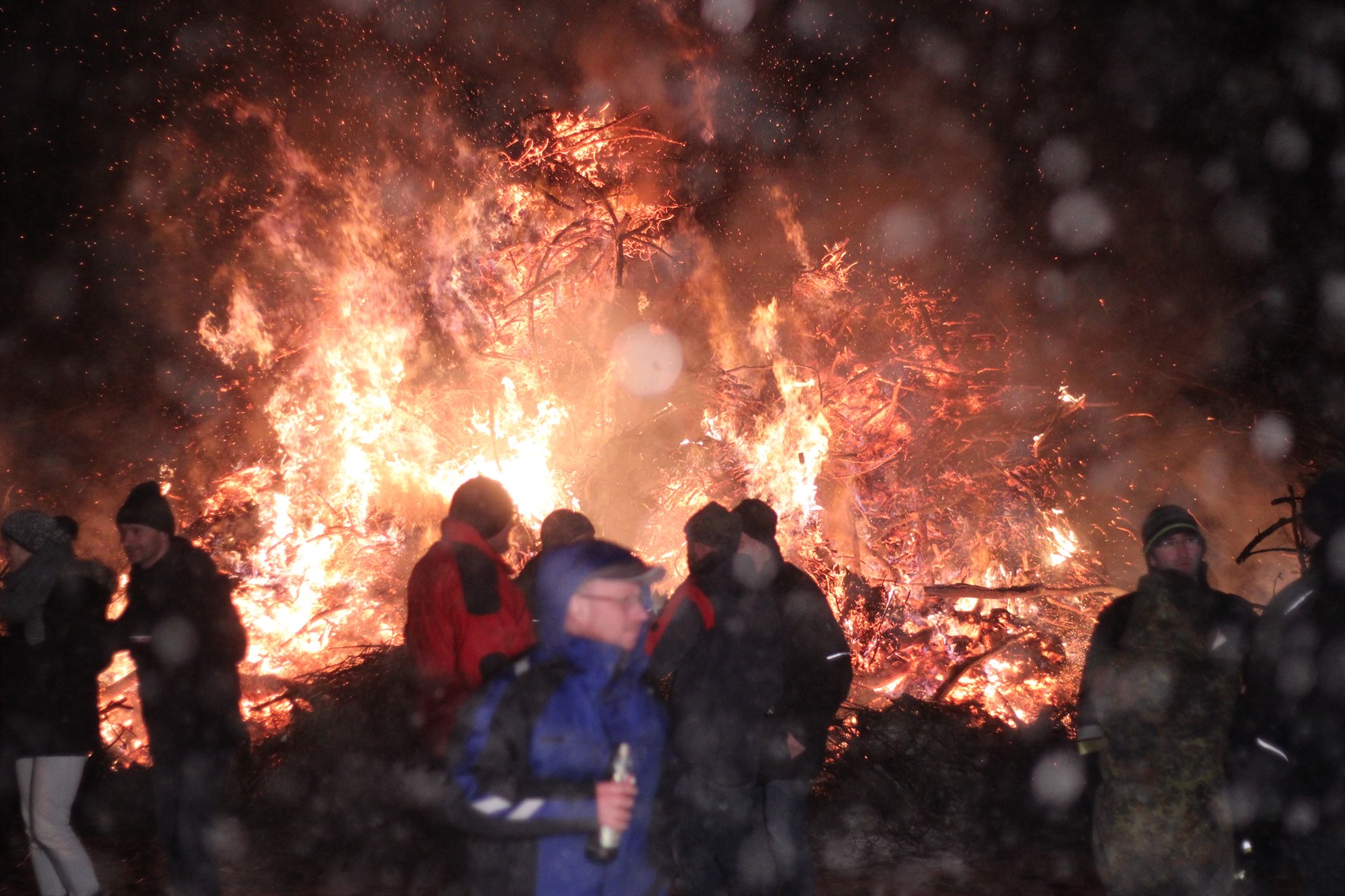 Wie auch in den vergangenen Jahren veranstaltete unsere Wehr auch in diesem Jahr den Funken im Dorf. Somit führen wir den alten Brauch des Funkenfeuers auch 2018 weiter fort. Nach dem tatkräftigem Aufbau in eisener Kälte konnten wir pünklich um 18:45 Uhr den Fackelumzug von der katholischen Kirche zum Funkenplatz mit anbrechender Dunkelheit starten. Anschließend konnte mit Hilfe der Fackeln der Funken trotz des Schneeregens zügig entzündet werden.