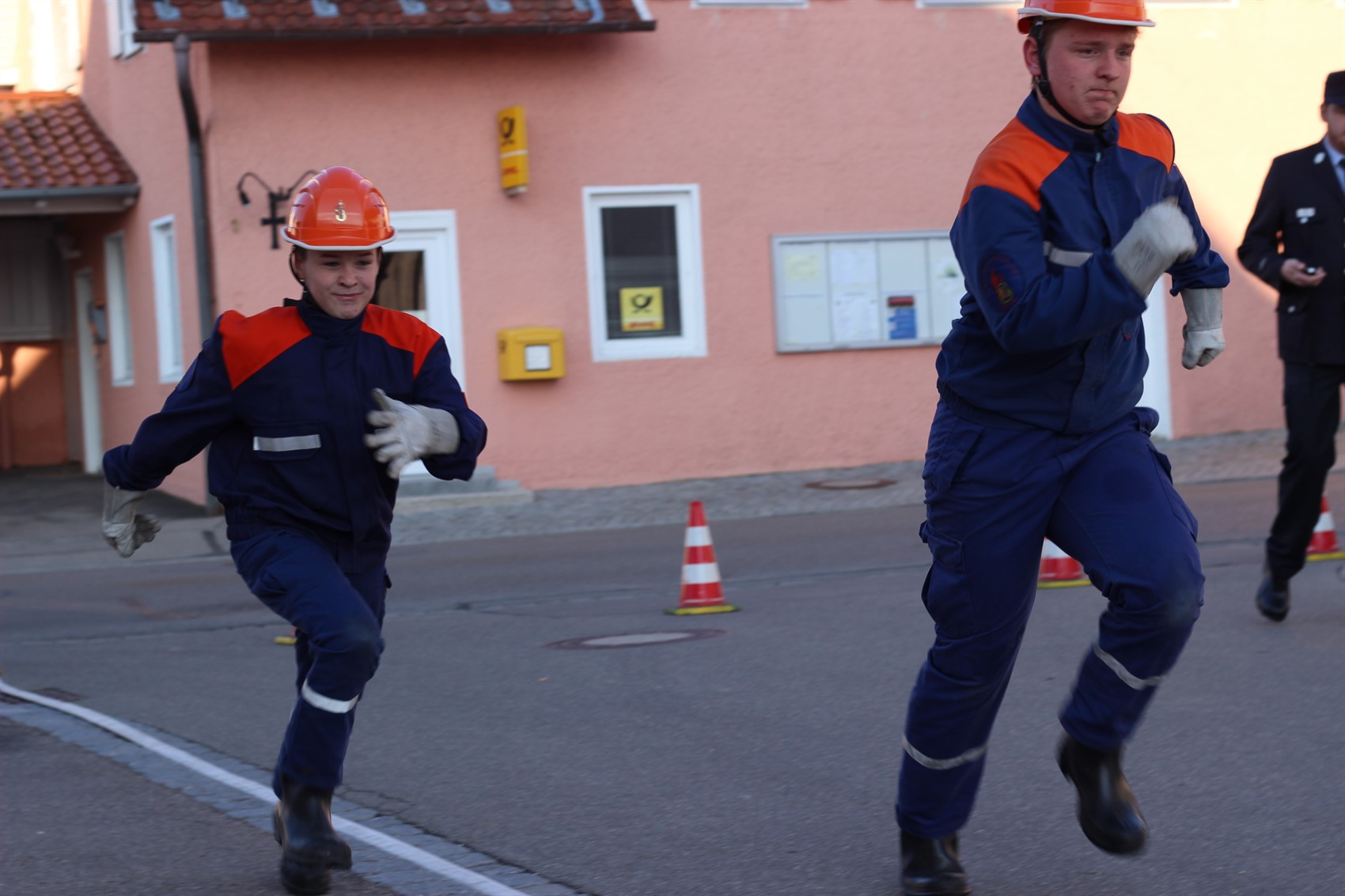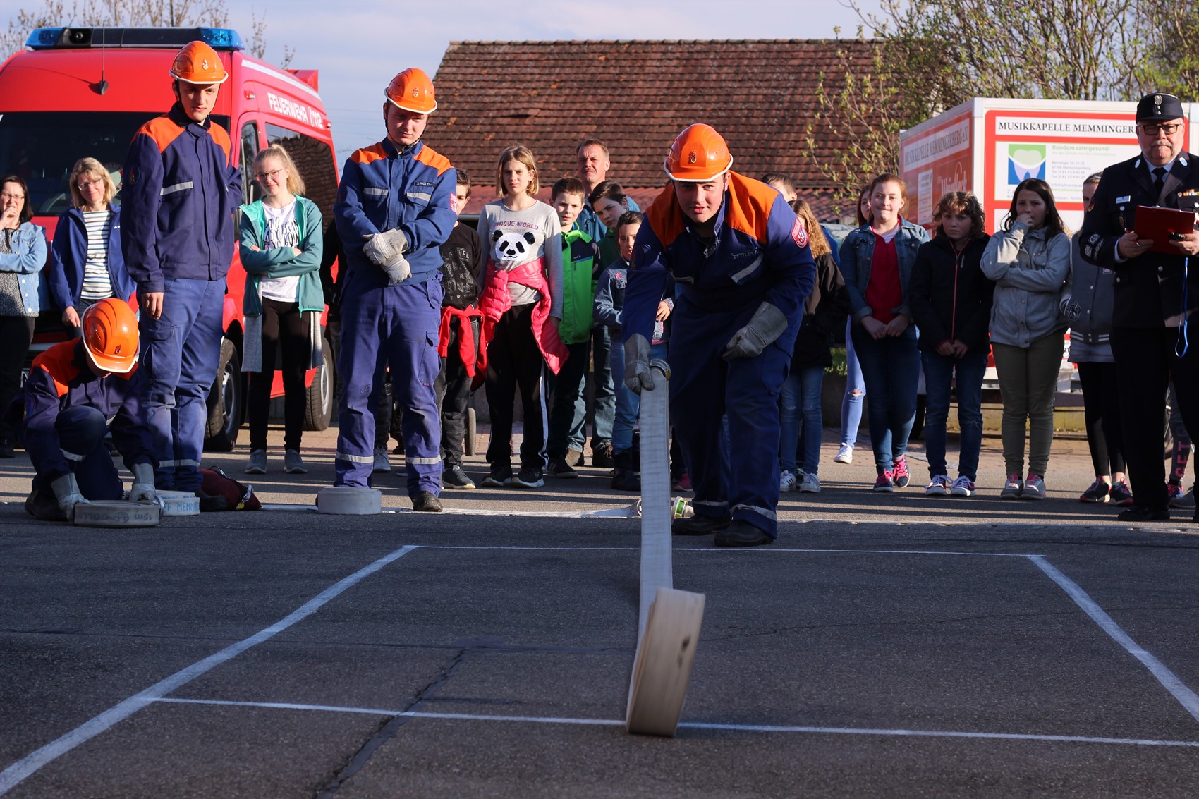 Zehn praktische Übungen und einen theoretischer Wissenstest rund um die Feuerwehr mussten bewältigt werden. Darunter mussten Sie Saugschläuche zusammenkuppeln, Schläuche exakt auszurollen, eine lange Druckleitung zusammenkuppeln sowie viele weitere Übungen ausführen. Doch hierbei gab es kein alleiniges Kämpfen. Nur in der Gruppe und im Team waren diese Aufgaben zu bewältigen.