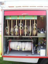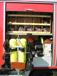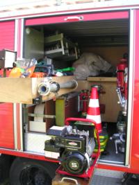 4 Atemschutzgeräte, 1 kleines Notstromaggregat, diverses Absperrmaterial,
